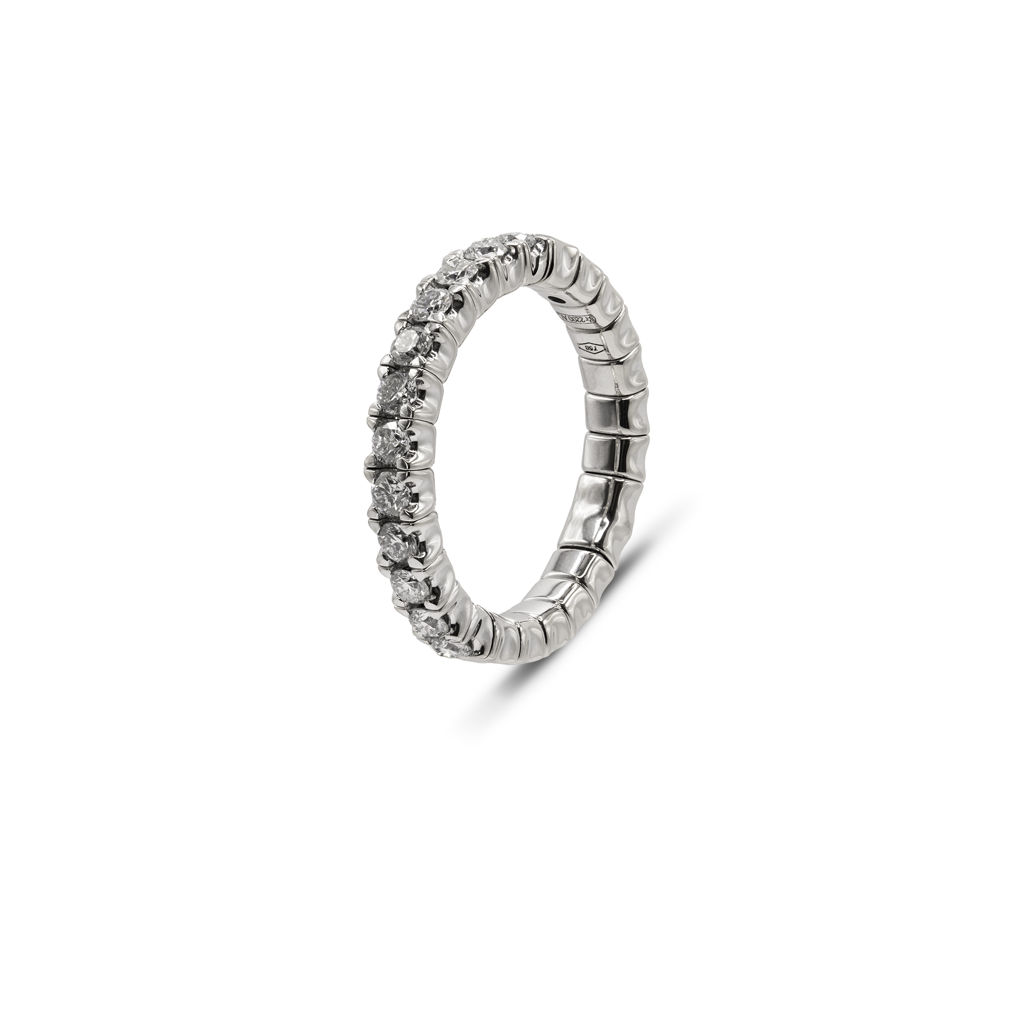 Alliance américaine en or blanc 18 carats, sertie de diamants. Largeur en 1,2 mm.