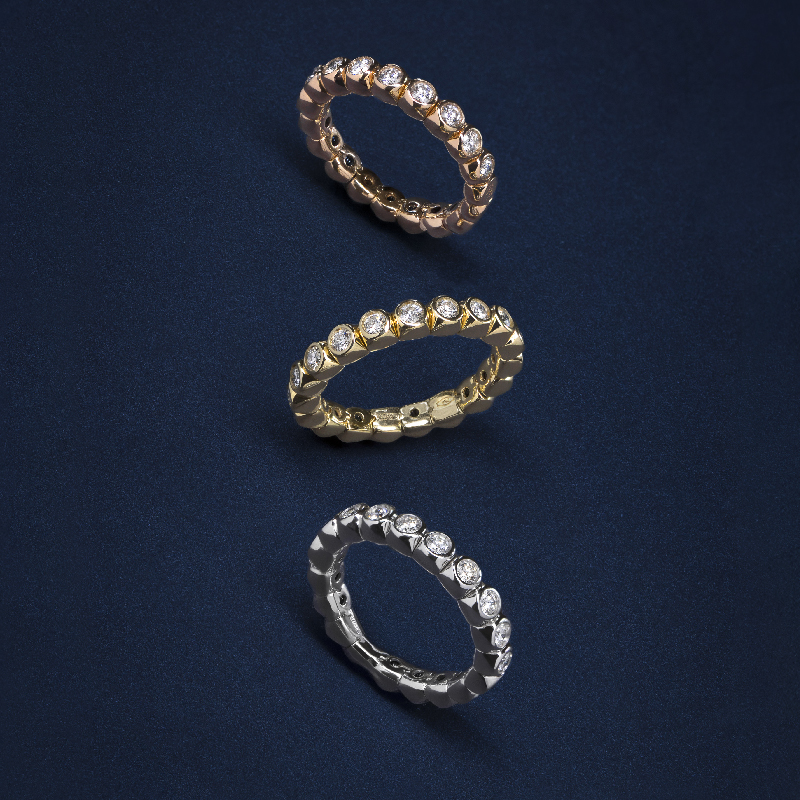 Ring in 18 kt roségoud met diamanten, soepel en comfortabel dankzij het veermechanisme.