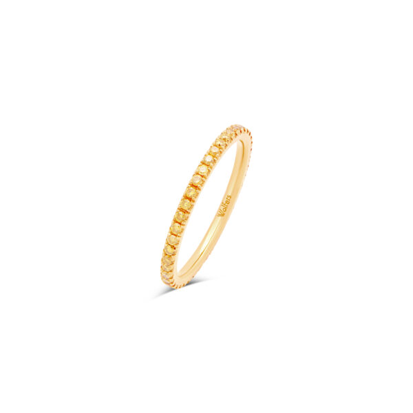 American wedding band in 18k yellow gold, set with yellow diamonds. Width in 1.2 mm.